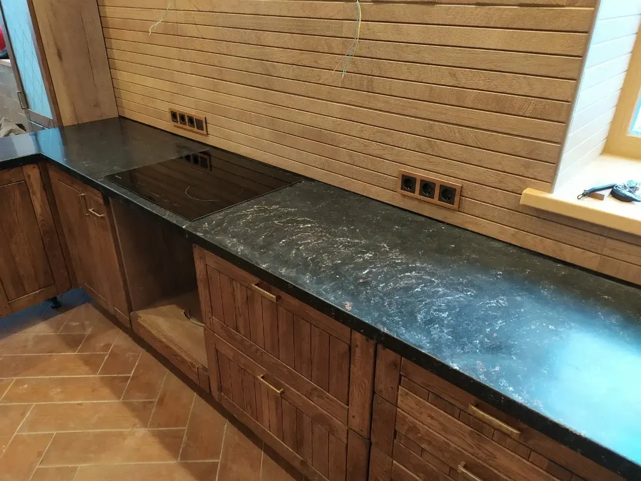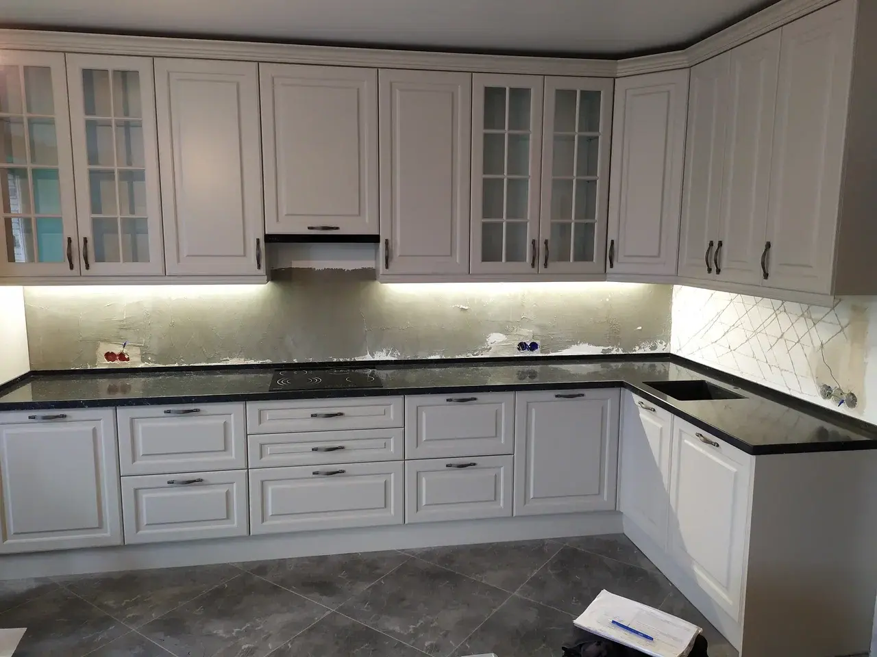 Классическая кухня с черной столешницей