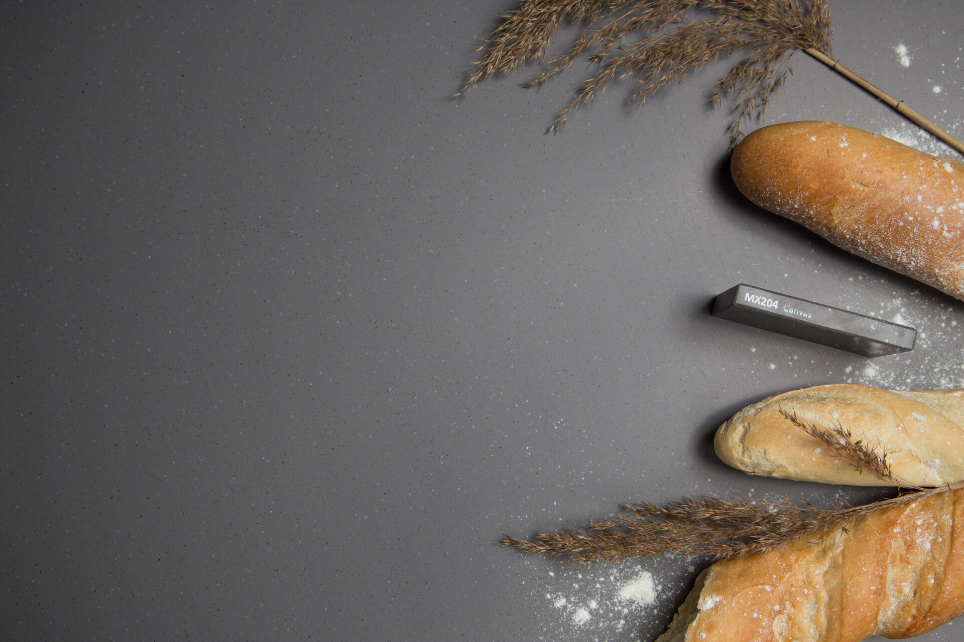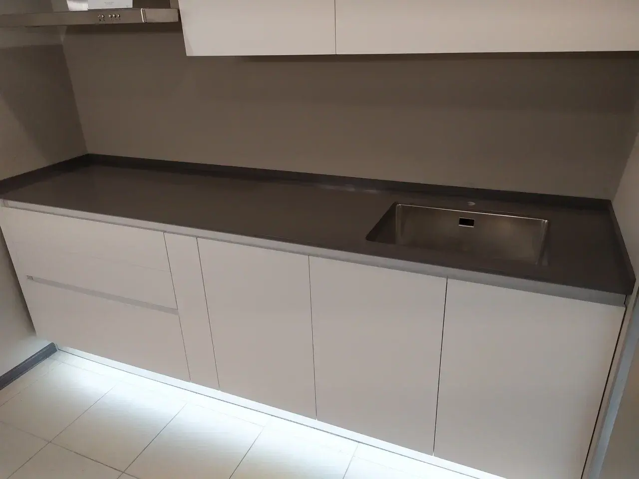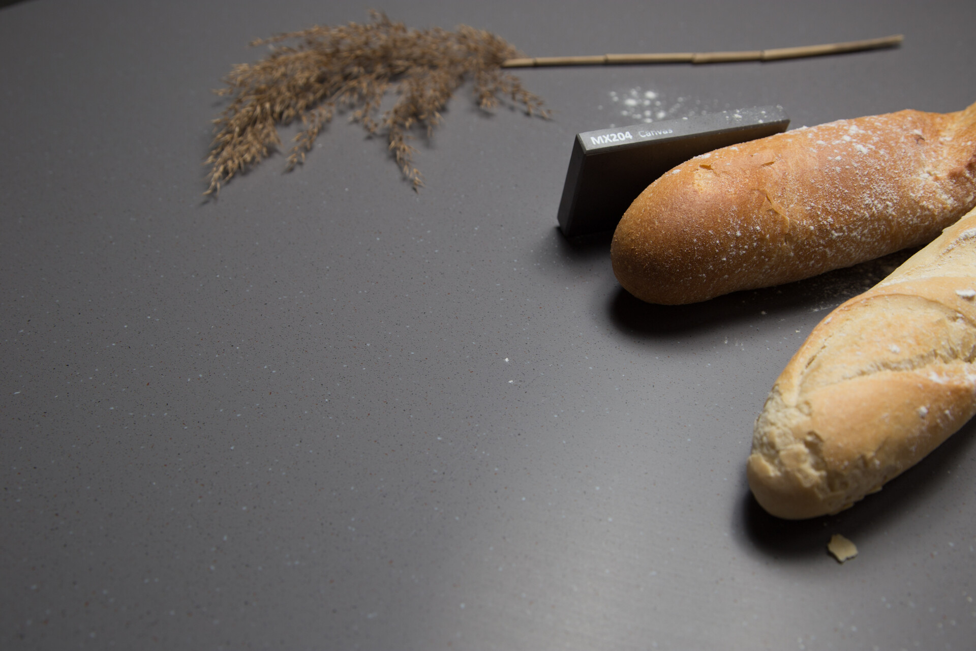 Прямая столешница из искусственного камня Opaly MX204 Canvas. Изготовлена в качестве выставочного образца в кухонном салоне